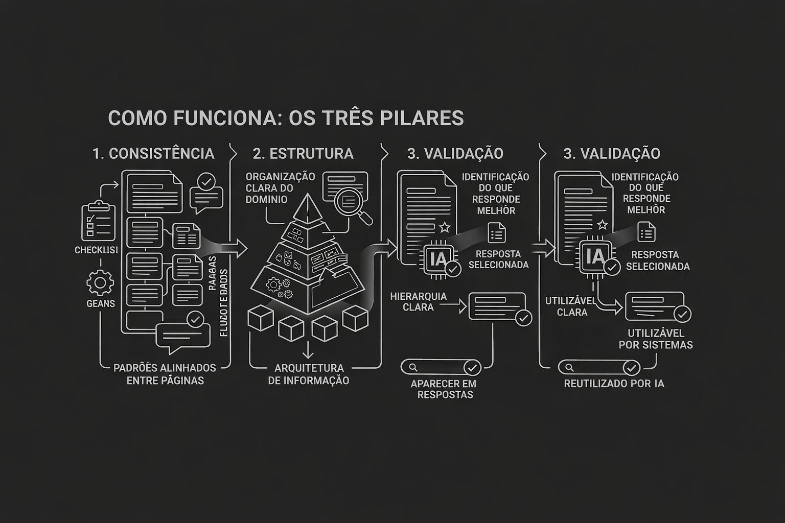 o Otimizador de Autoridade Algorítmica organiza sinais e padrões para tornar o domínio mais claro e consistente.